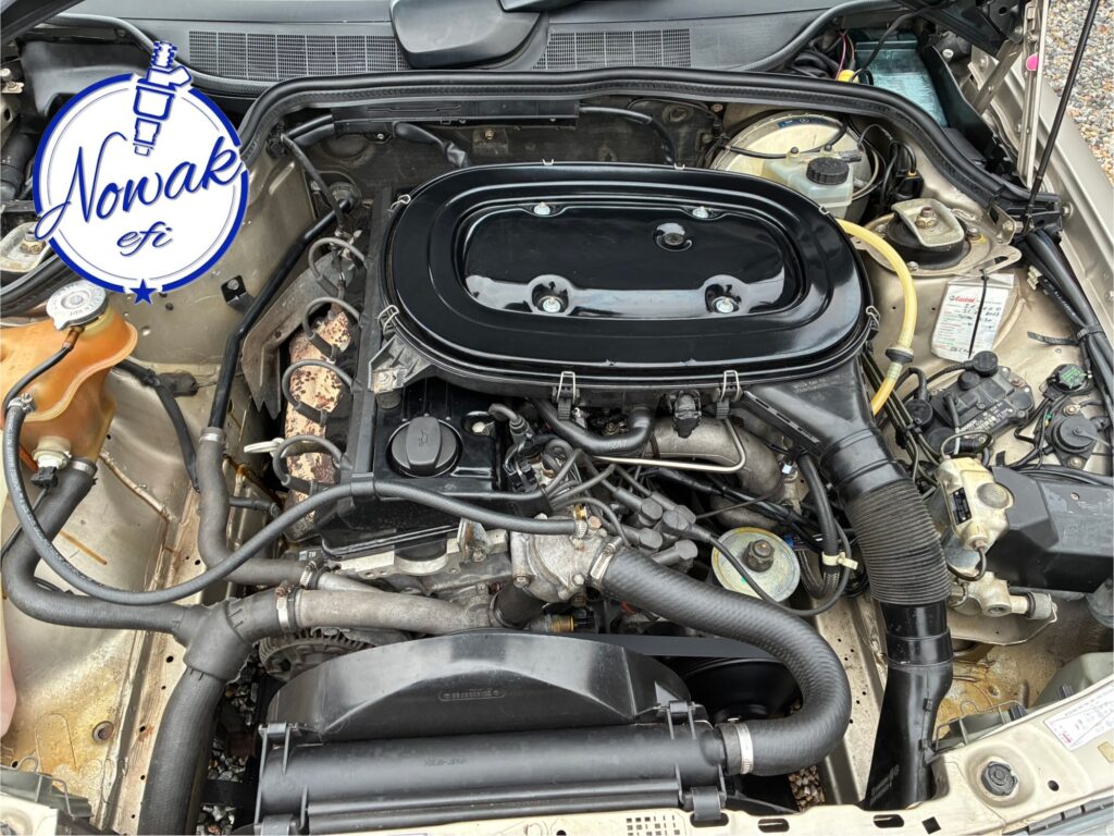 W prezentowanym materiale pokazujemy efekty pracy silnika Mercedes M102 (R4) po konwersji z mechanicznego wtrysku K-Jetronic na nowoczesny, elektroniczny system NowakEFI. Samochód Mercedes W201 przyjechał na kołach i bez problemu odpalał, jednak po osiągnięciu temperatury roboczej silnik pracował nierówno.